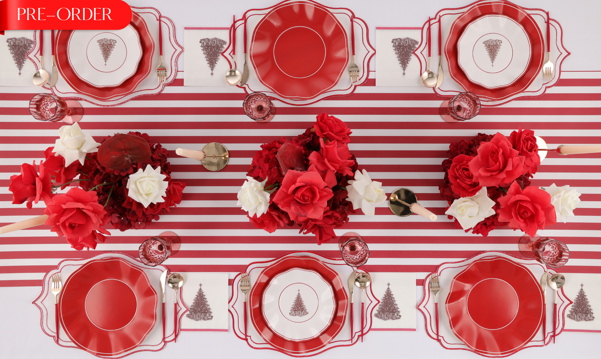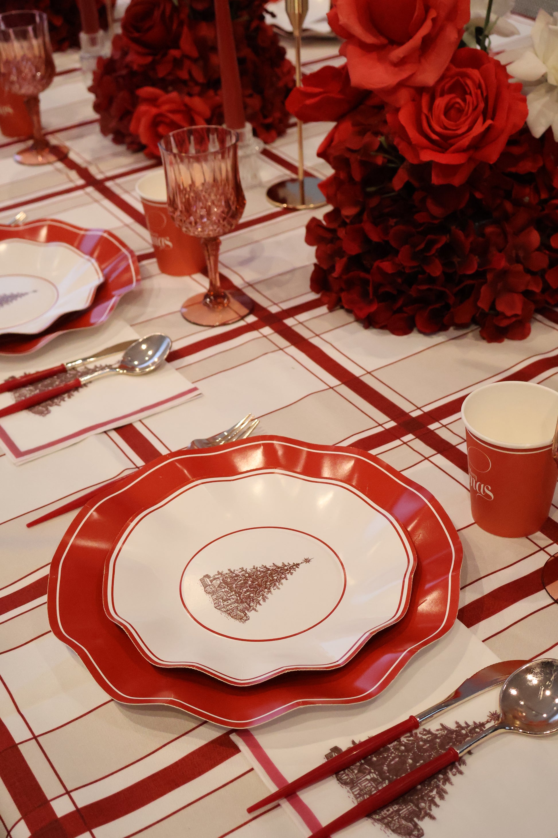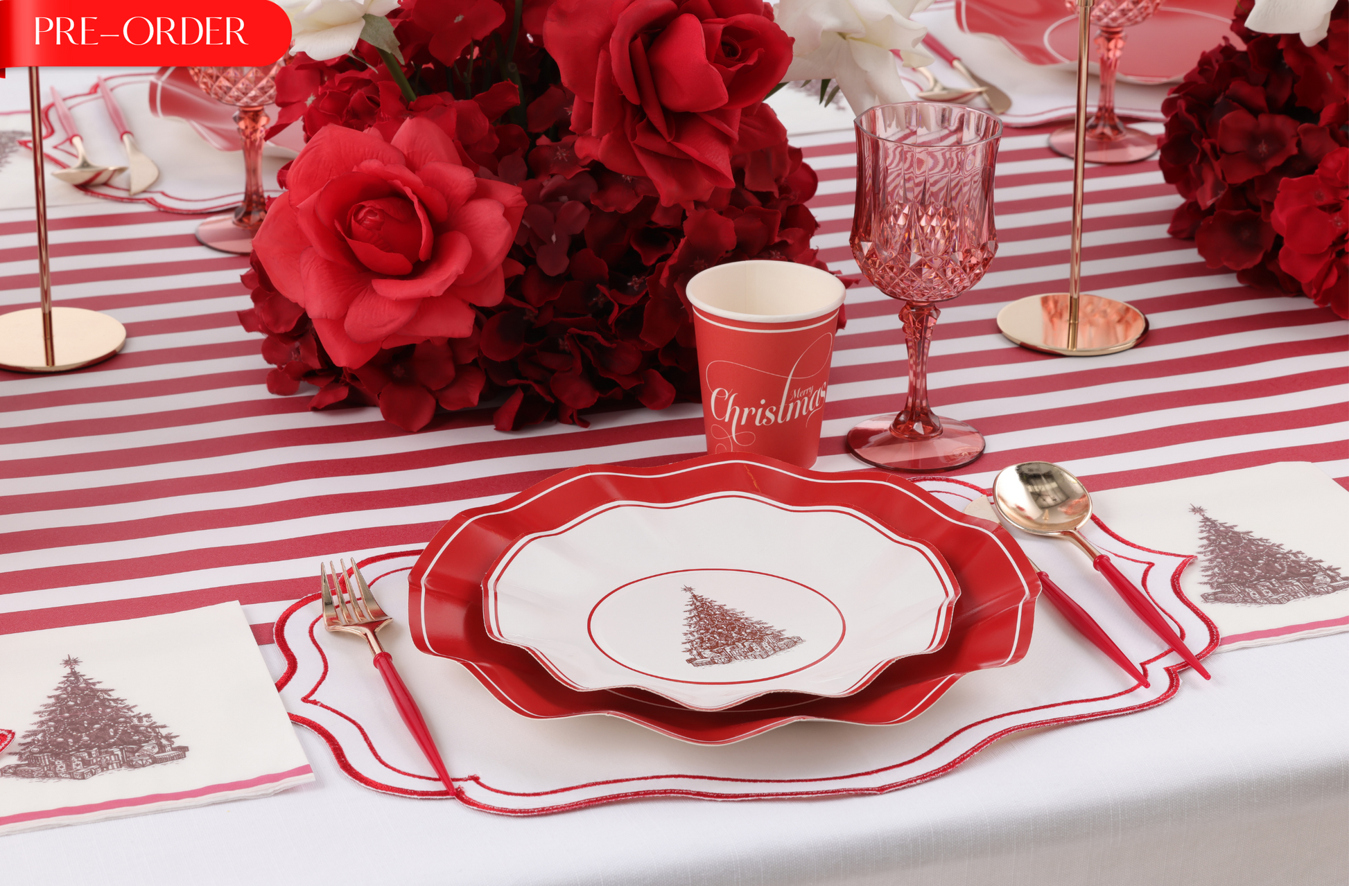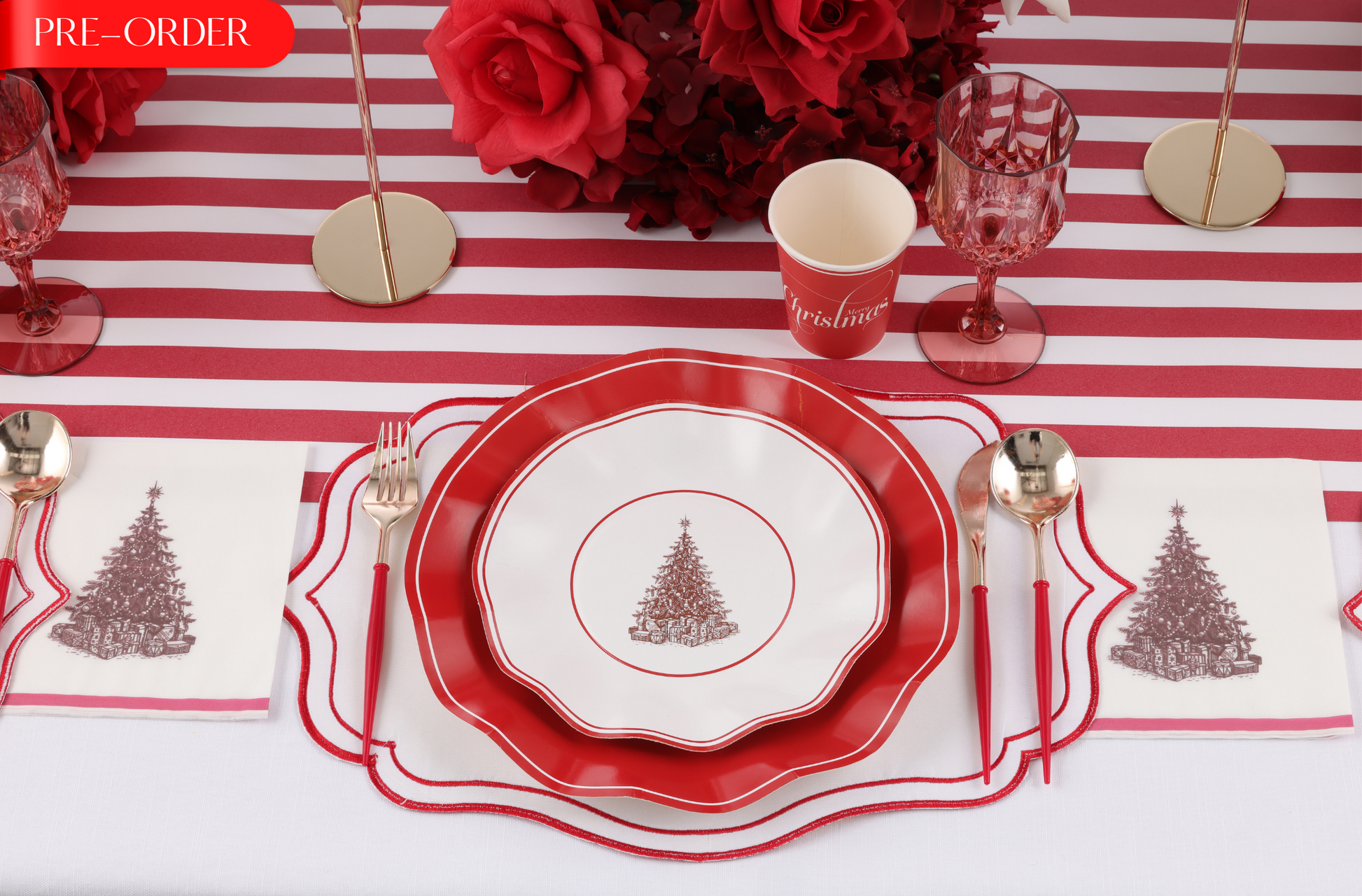 This set includes everything you need, dinner plates, entrée plates, napkins, cups, and cutlery — for a picture-perfect disposable tablescape. Elegant yet practical, it’s perfect for Christmas Day feasts.