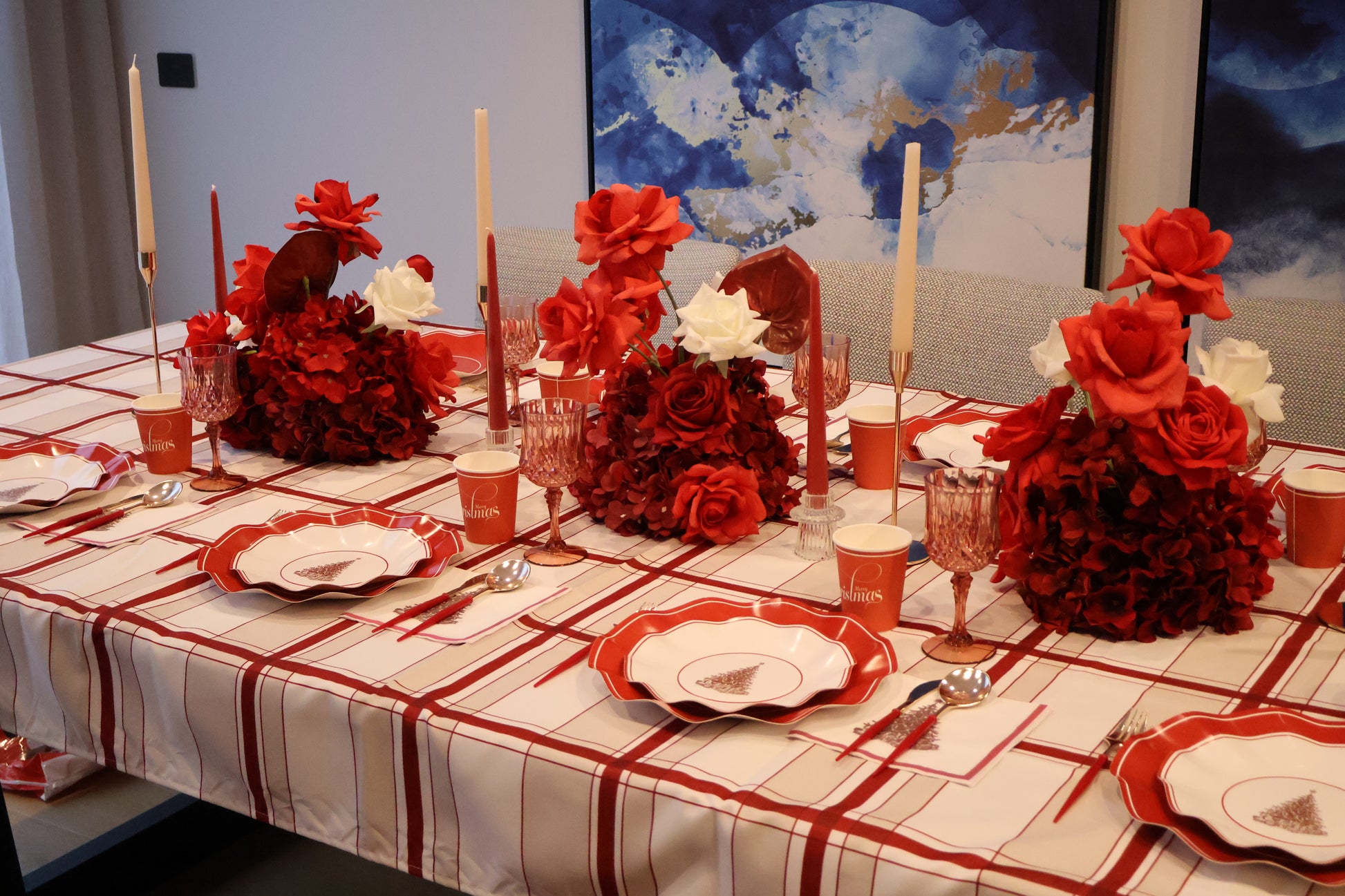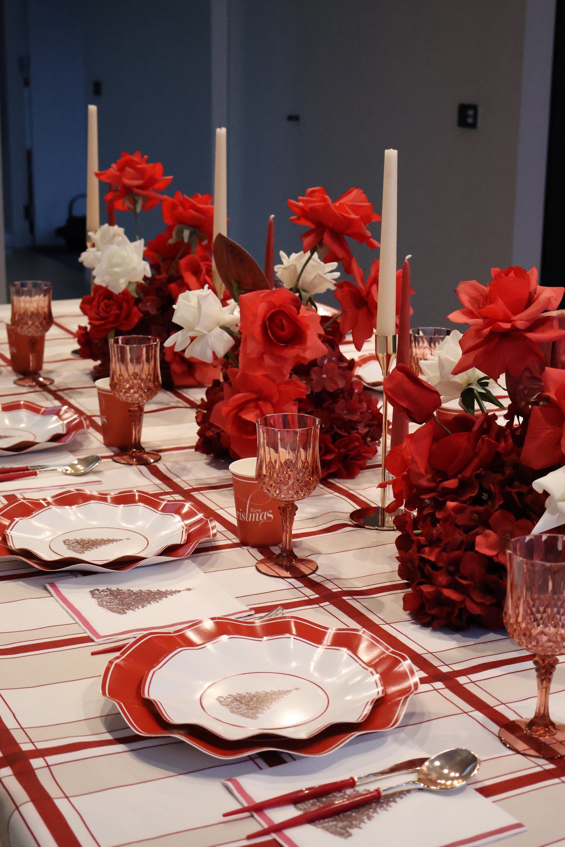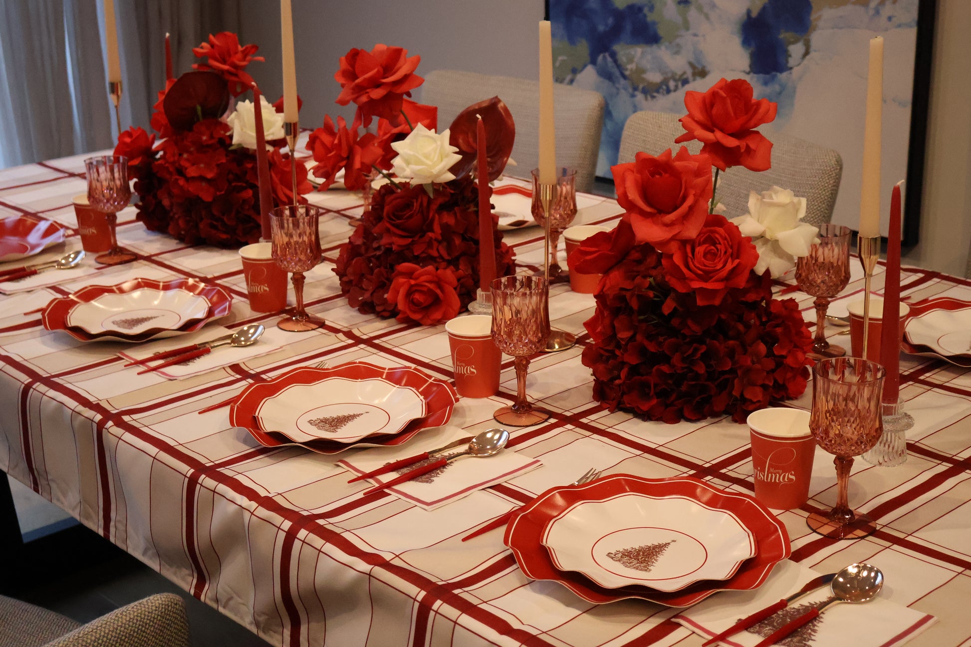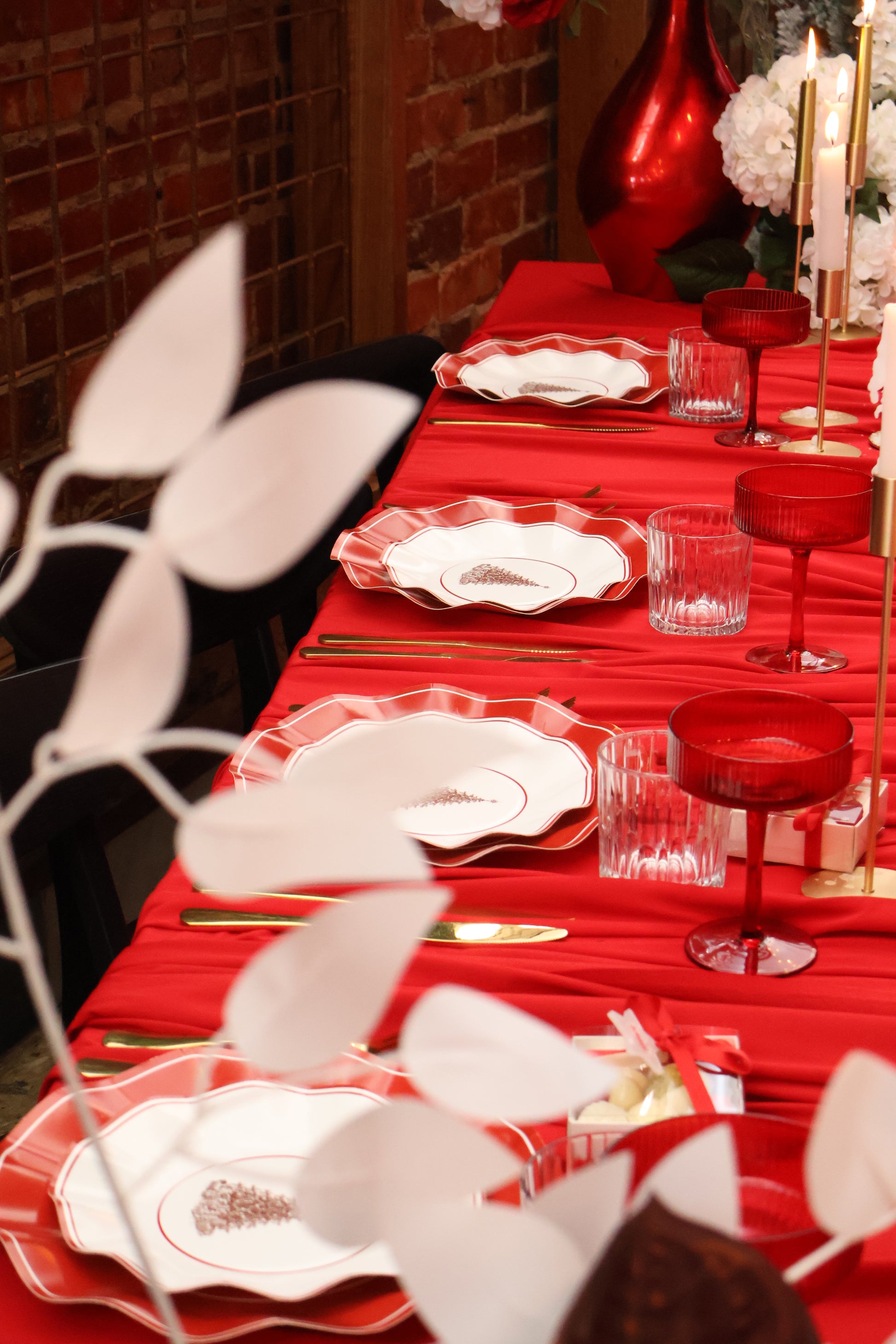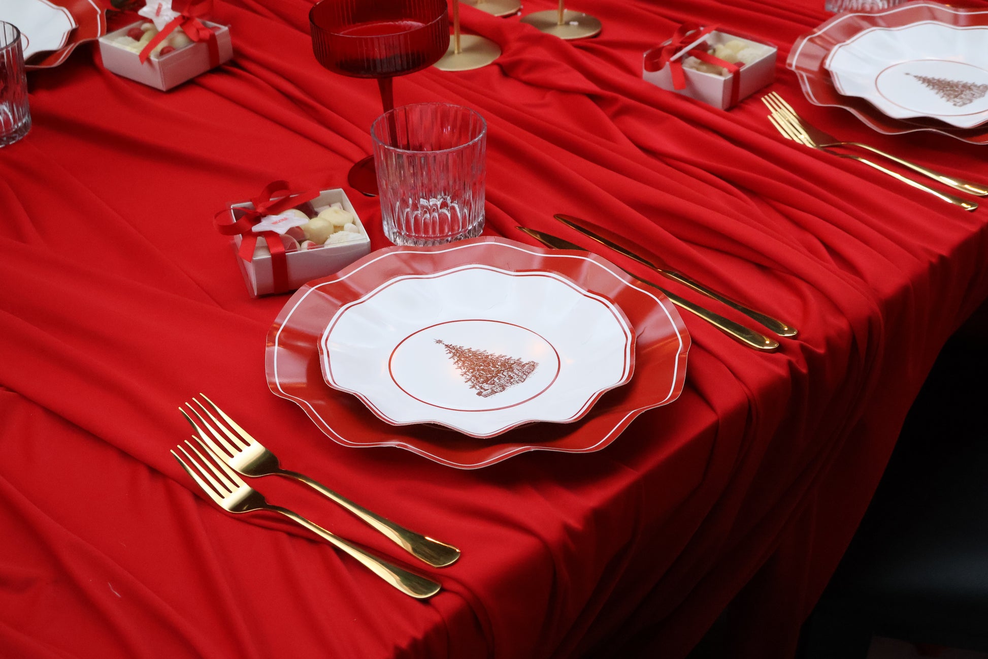 This set includes everything you need, dinner plates, entrée plates, napkins, cups, and cutlery — for a picture-perfect disposable tablescape. Elegant yet practical, it’s perfect for Christmas Day feasts.
