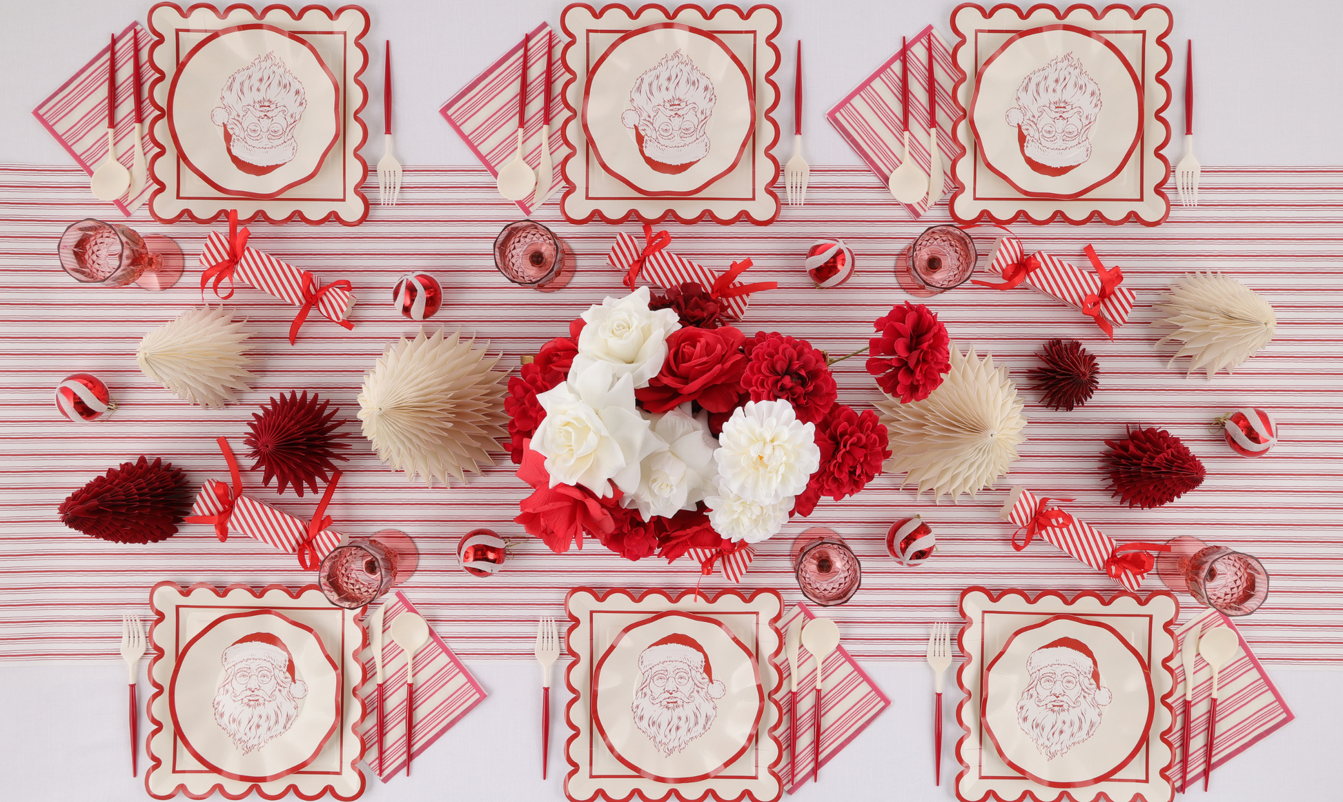 Pairs perfectly with our Red or Clear Wine Classic glasses and Candy Cane Stripe runner to complete the look!