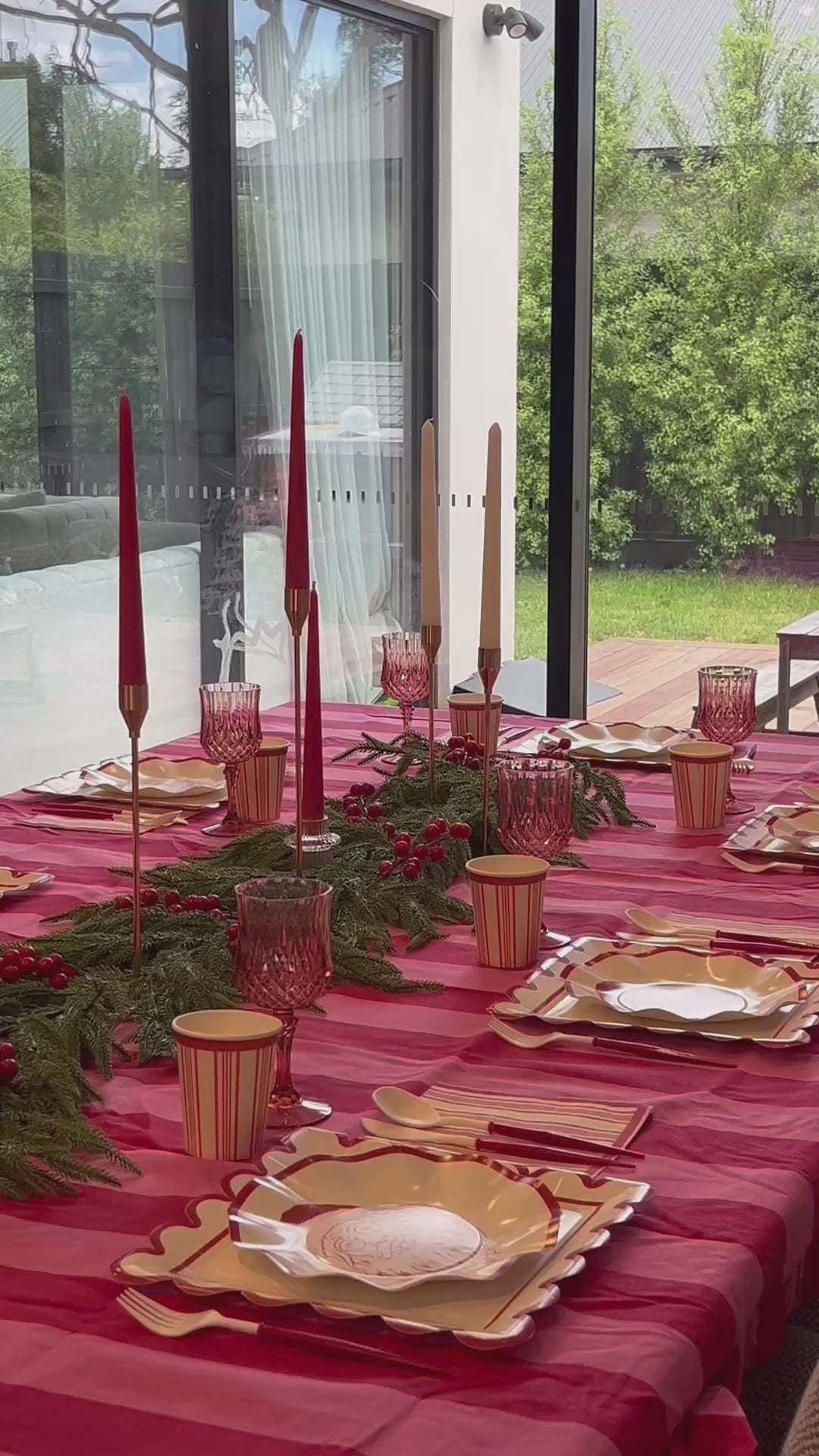 This set includes everything you need, dinner plates, entrée plates, napkins, cups, and cutlery — for an easy, disposable tablescape that feels fresh and fun. Perfect for hosts who love a modern twist on tradition.