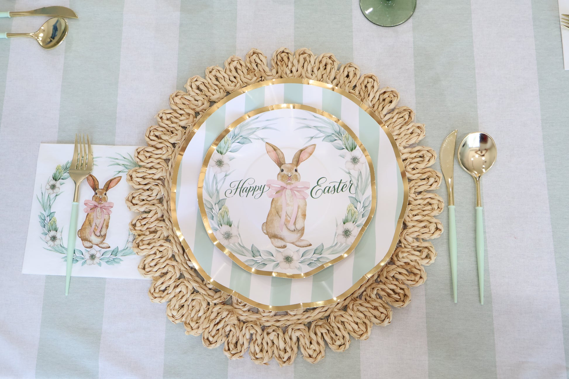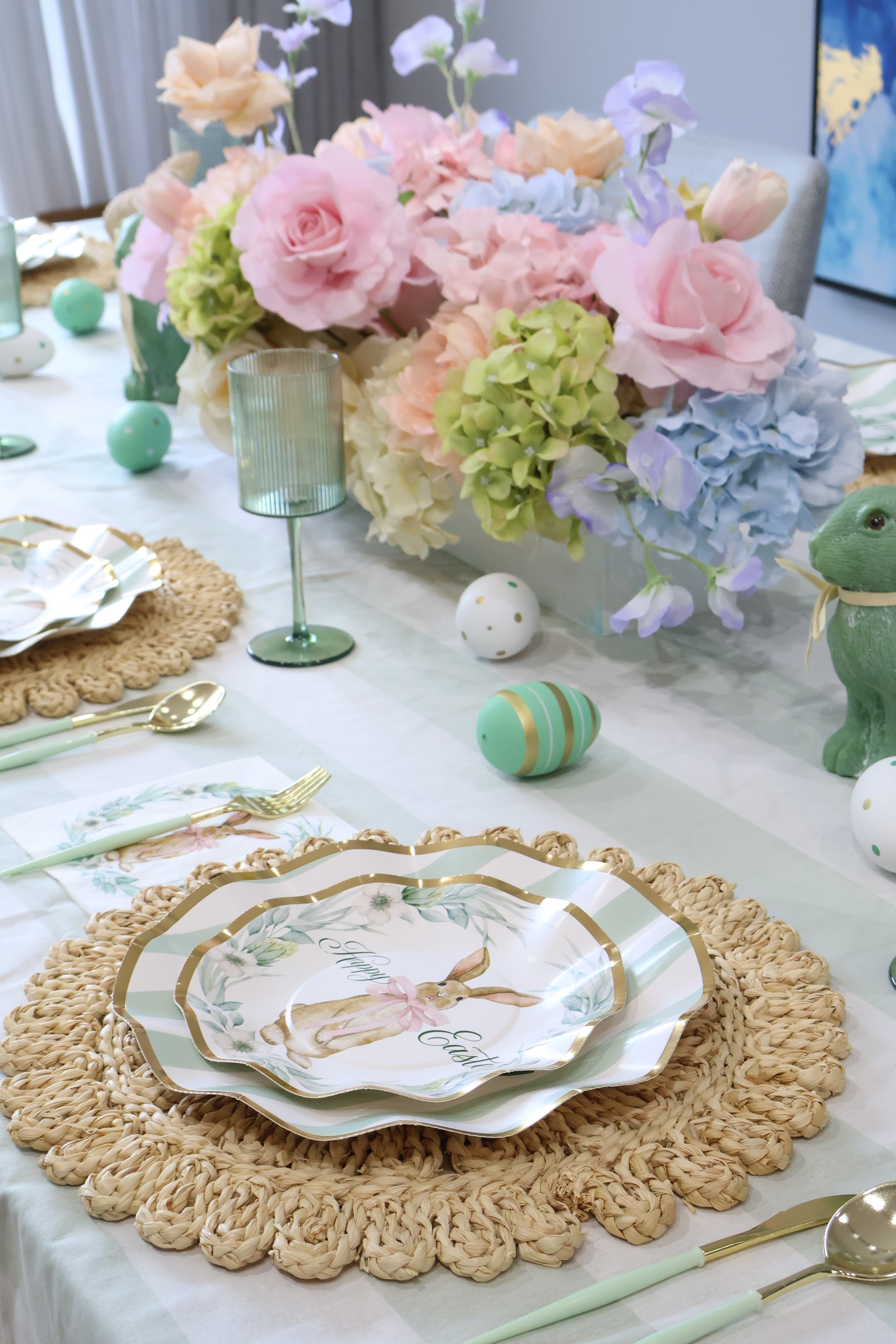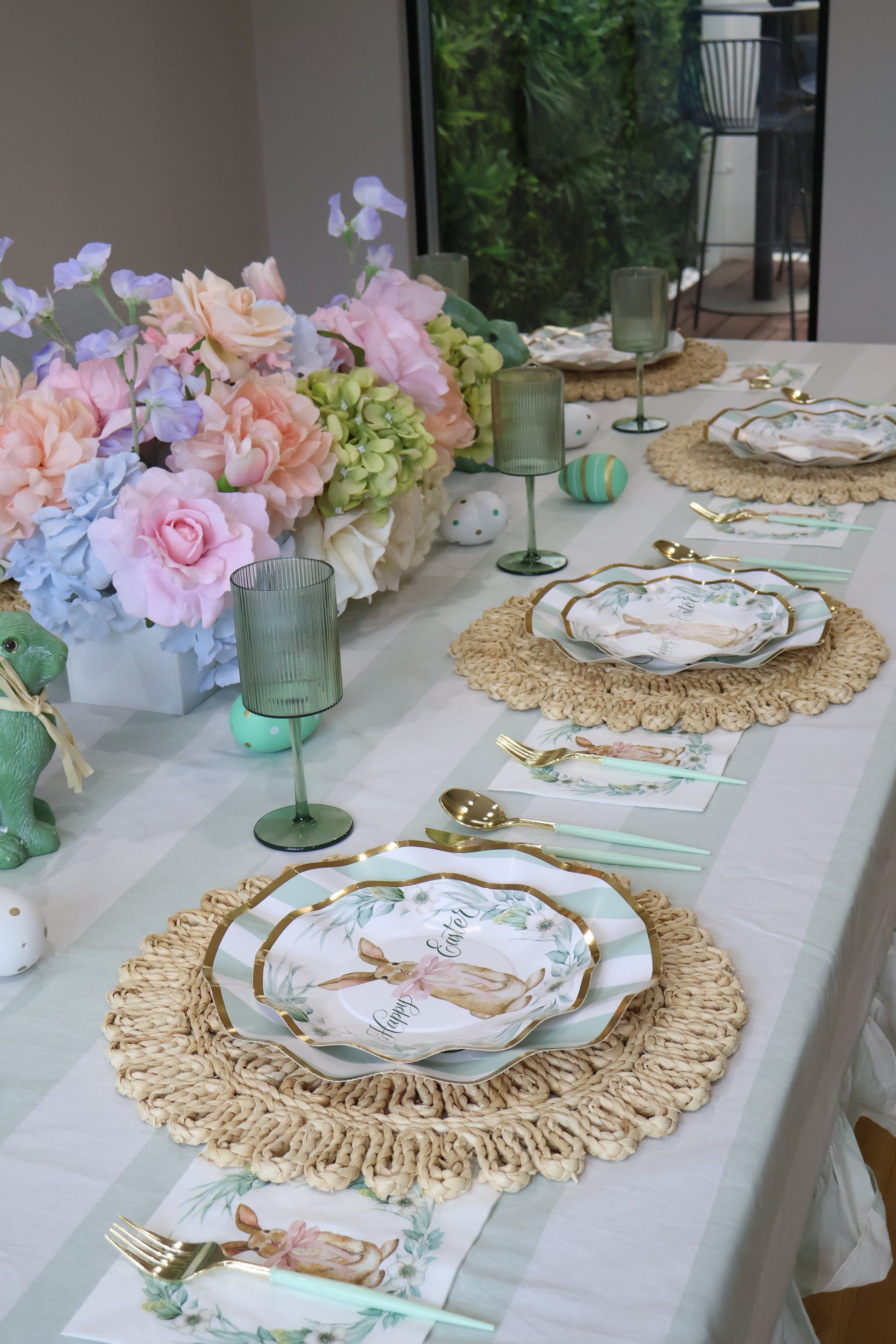 Deck your table with soft seasonal charm using our Sage Meadow Easter set. Gentle greens, delicate foliage, and sweet Easter motifs create a calm, nature-inspired tablescape that feels both fresh and timeless. With its earthy palette and subtle vintage feel, Sage Meadow is perfect for relaxed Easter lunches and elegant celebrations alike.