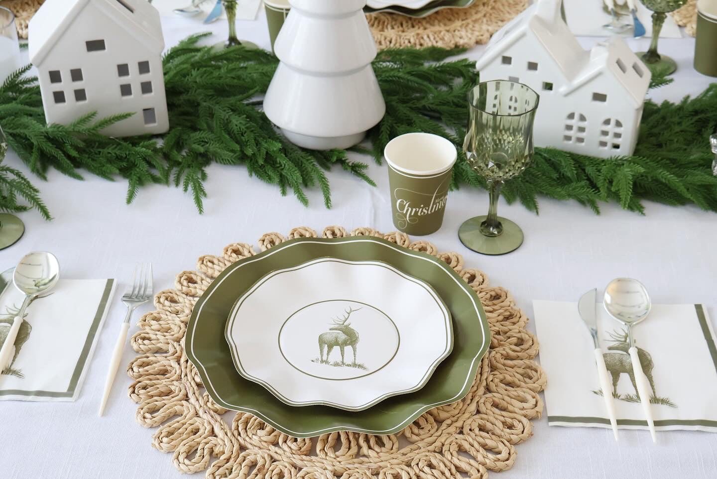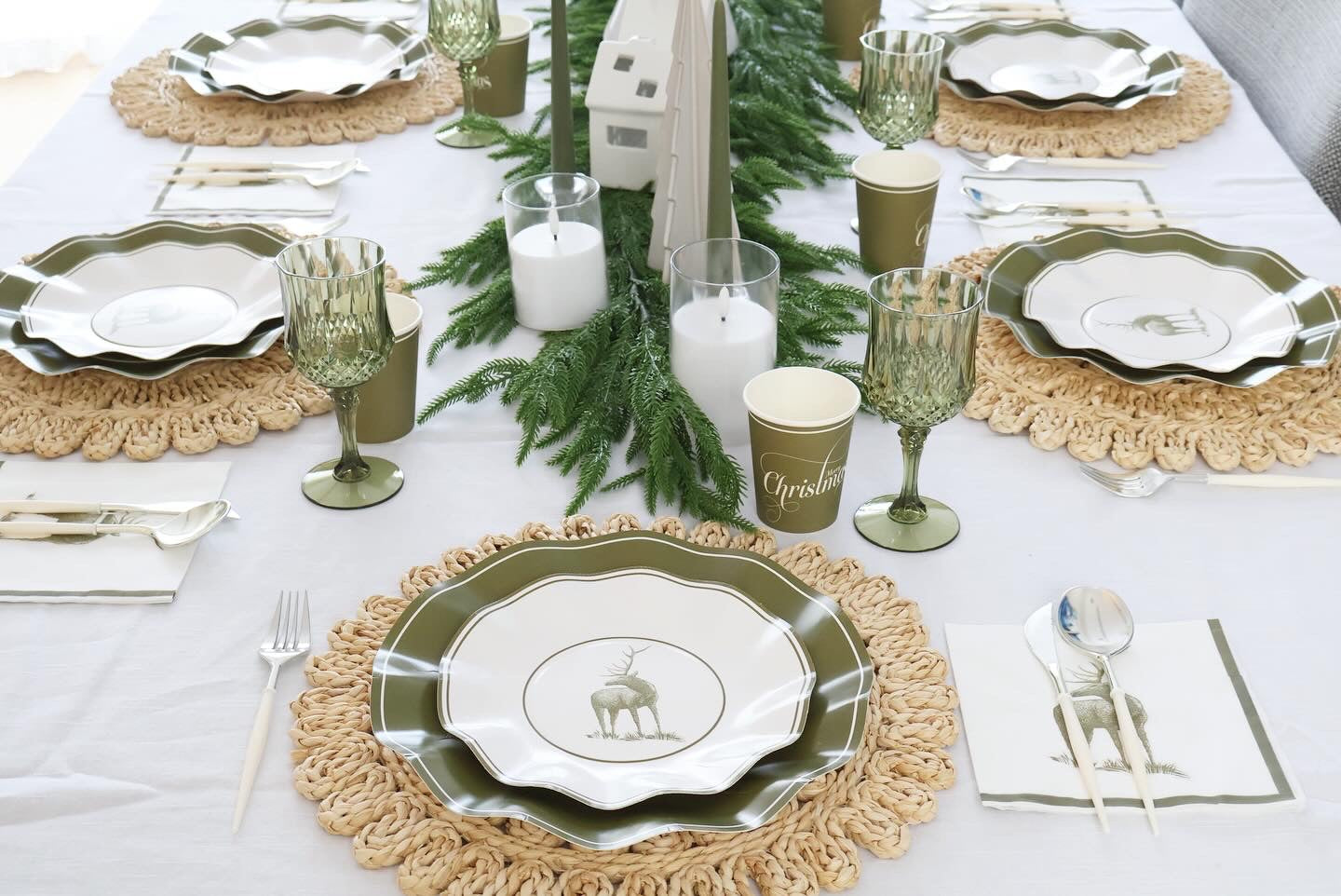This set includes everything you need, dinner plates, entrée plates, napkins, cups, and cutlery — to create a polished, disposable tablescape. Designed for effortless hosting, Evergreen looks as refined as it feels practical.