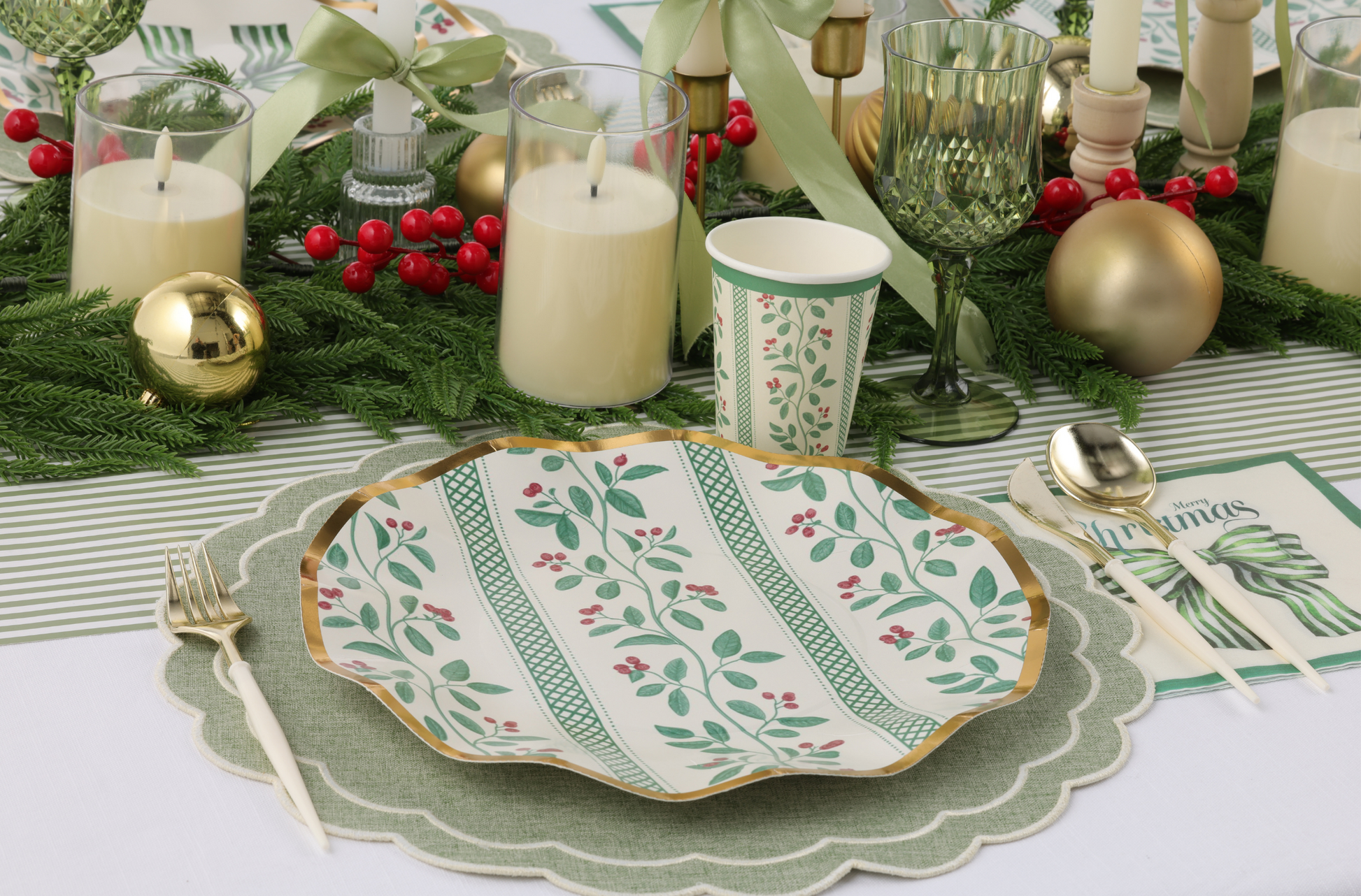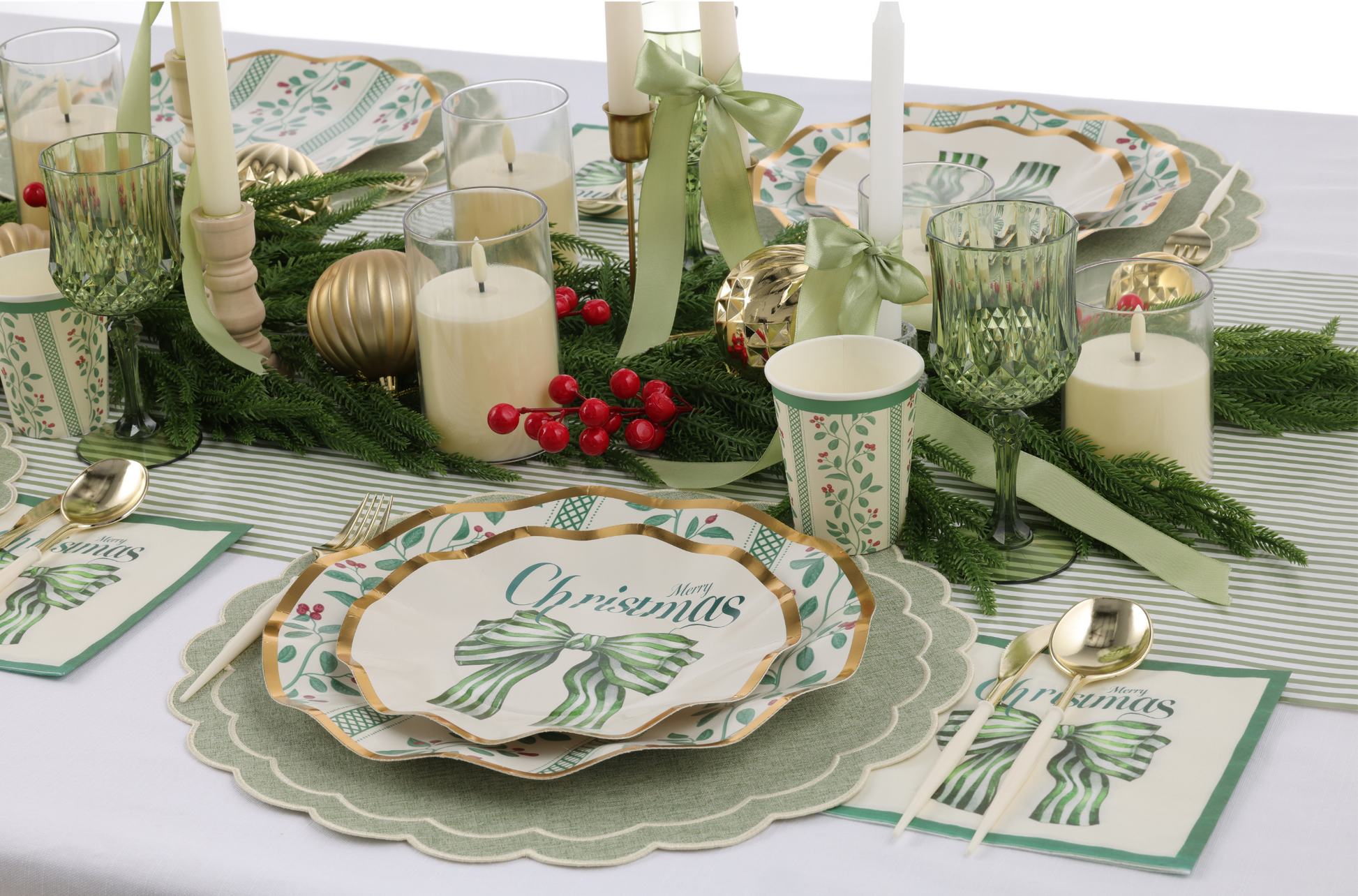 This set includes everything you need, dinner plates, entrée plates, napkins, cups, and cutlery — for a beautifully coordinated, disposable tablescape. Its nostalgic design makes every meal feel like a Christmas classic.