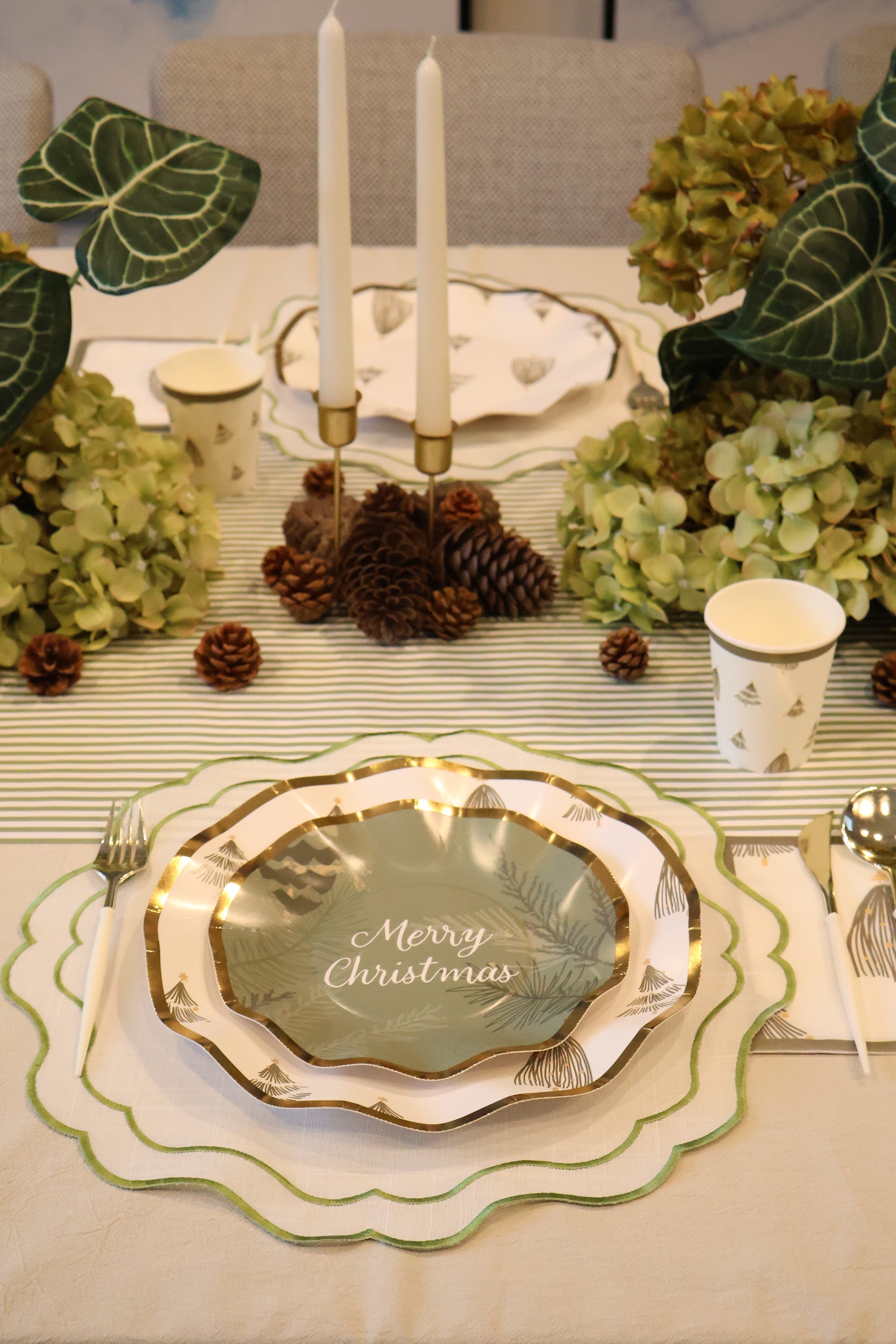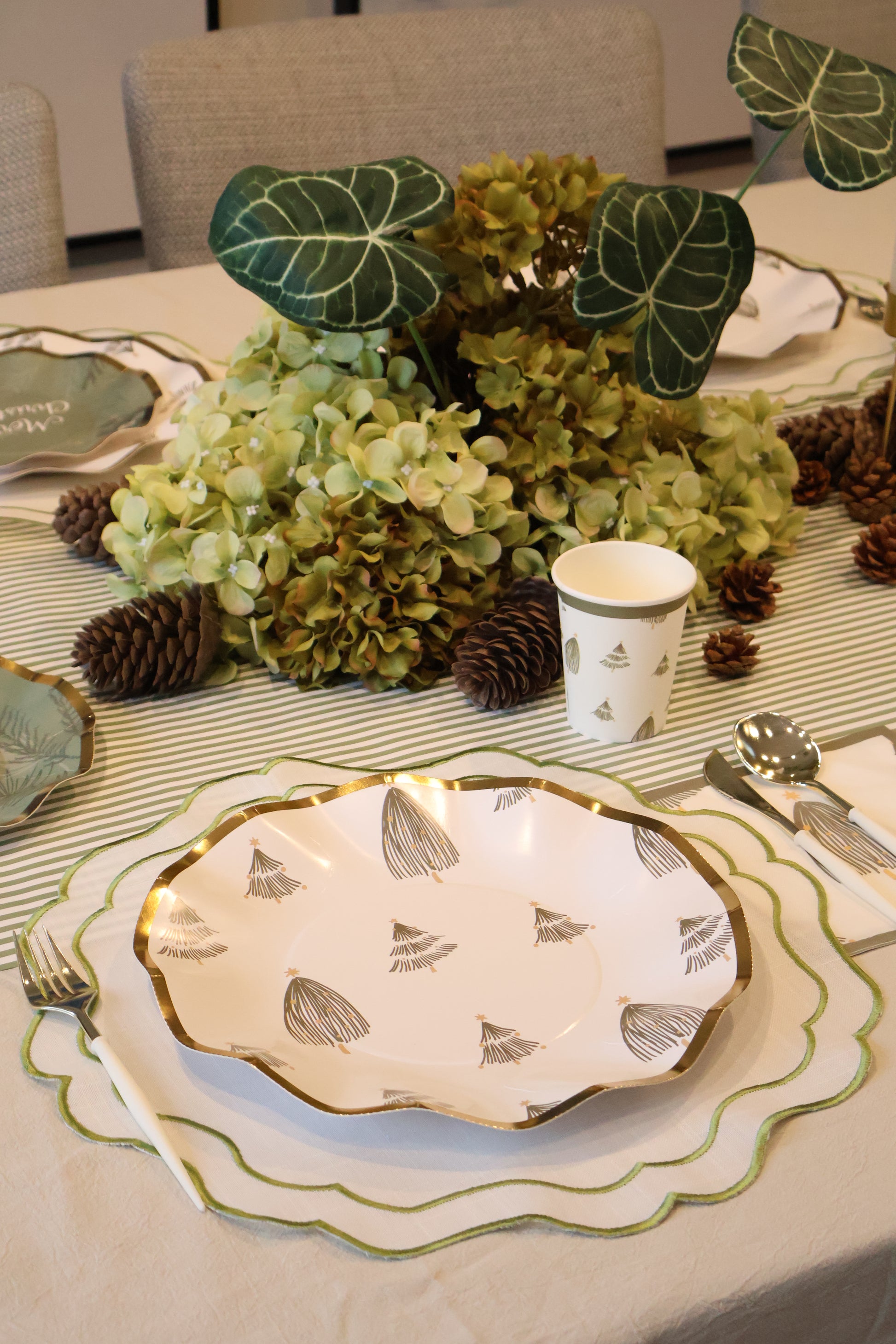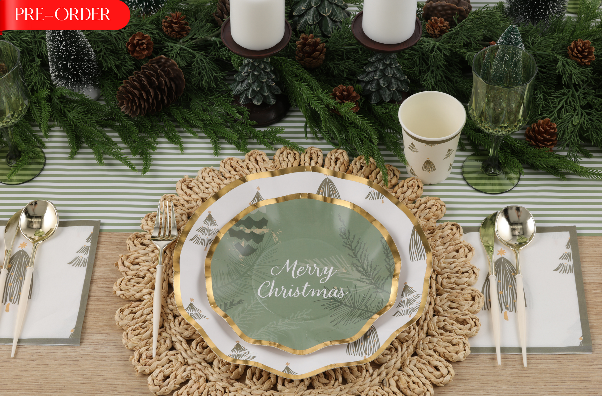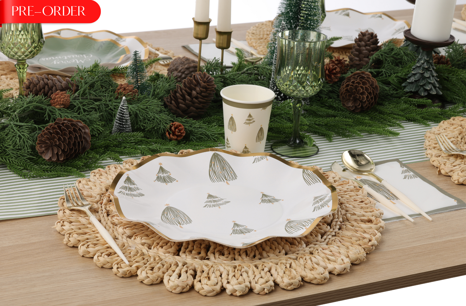 Celebrate the season in natural style with our Seasons Eatings set! Sketched Christmas trees and an olive-green accent plate create effortless woodland Christmas vibes—understated, festive, and perfect for gatherings with a warm, organic feel.