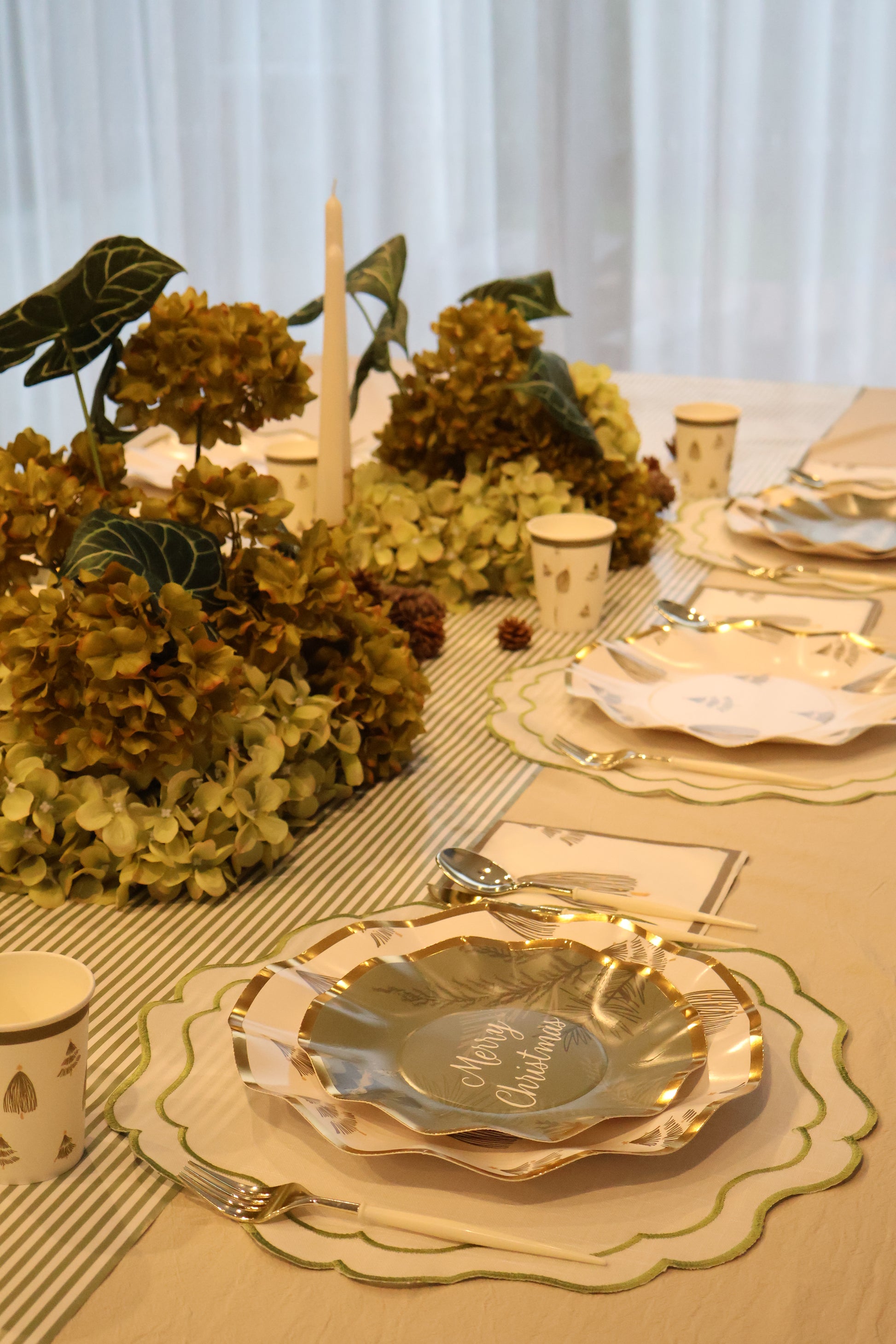 Elevate your events with our thoughtfully designed tableware. Every set includes all the essentials—dinner plates, side plates, napkins, cups, and cutlery—making it simple to create a stylish, disposable tablescape. Designed to impress, our pieces combine practicality with elegance, ensuring your guests love both the look and the convenience.